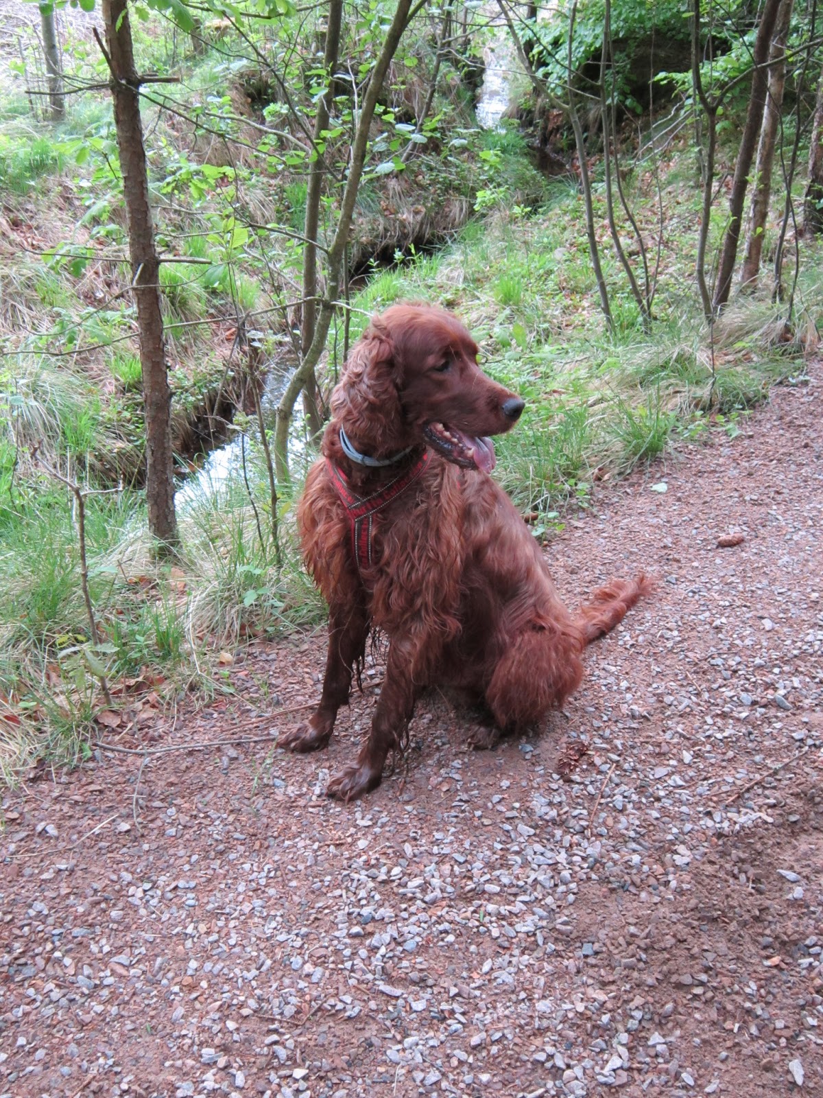 Det som är både positivt och negativt när vi rider på söndagar är att det ofta skjuts på skjutbanan intill skogen där vi rider. Det är naturligtvis negativs eftersom Elvis blir påverkad, lite rädd och stressad, men också positivt eftersom detta är enda tillfället där han hör skott och inte flyr. Jag antar att det beror på att han tycker det är så pass roligt att springa med när vi rider att han inte vill "offra" det även om det smäller. Jag tänker också att jag inte kan påverka med min oro och energi eftersom jag sitter uppe på Askur. han måste då hantera det själv utan att kopplet drar eller matte strular till det. En annan tanke som jag fått höra av många hundkunniga är att så länge hunden är i rörelse framåt har den lättare att hantera stress och oro. Själva rörelsen i sig och utrymmet att kunna fly gör kanske att han faktiskt inte känner behov av att göra det.